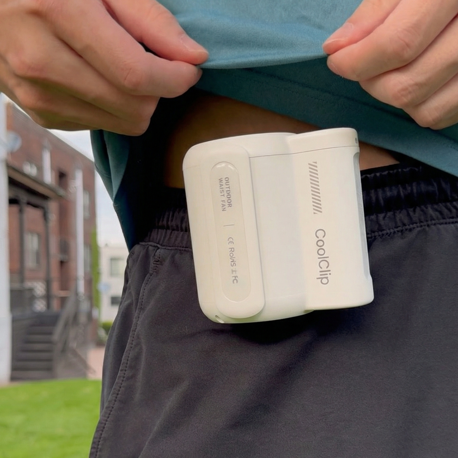 The CoolClip™ works by clipping on your waist and circulates air in your shirt. The wind inside your shirt will draw heat away from the skin, keeping you cooled during the hottest summer days. In fact, you can clip it anywhere you want, and it doubles as a powerful handheld fan.